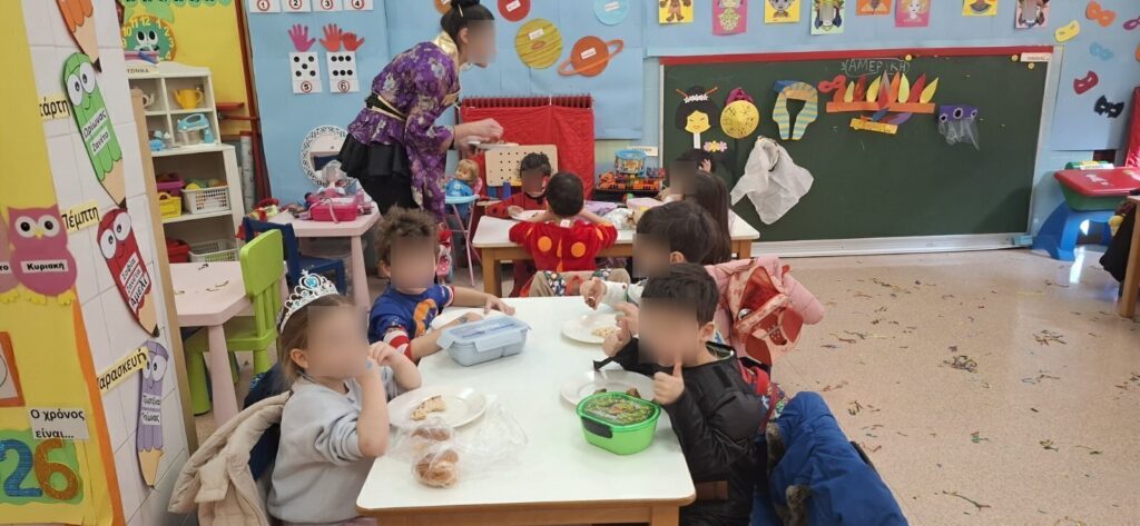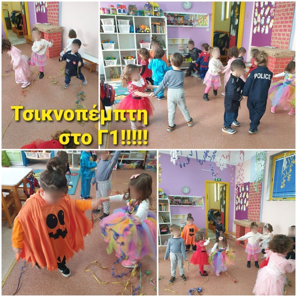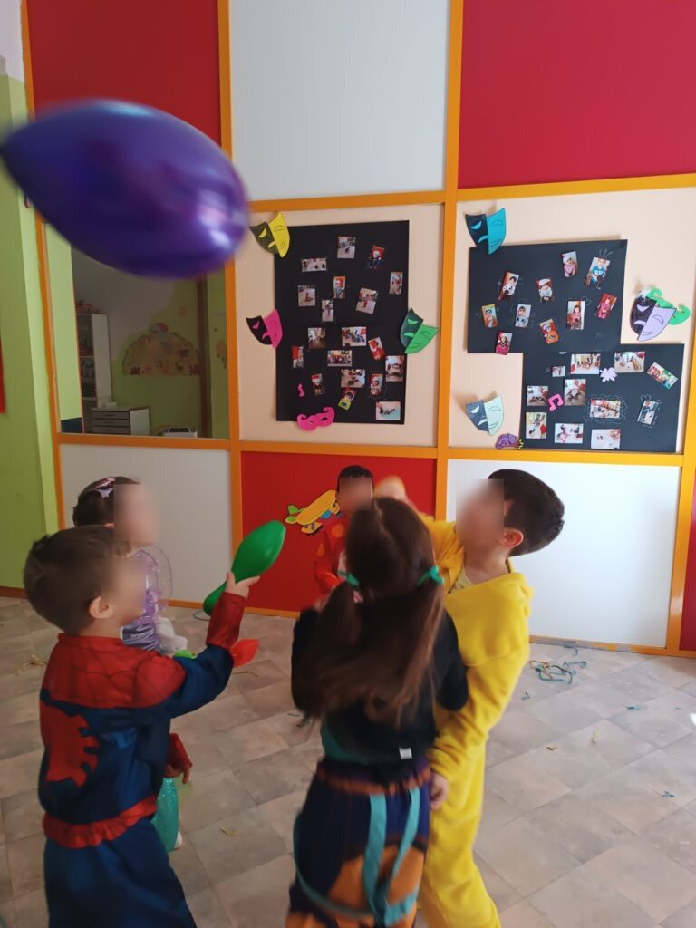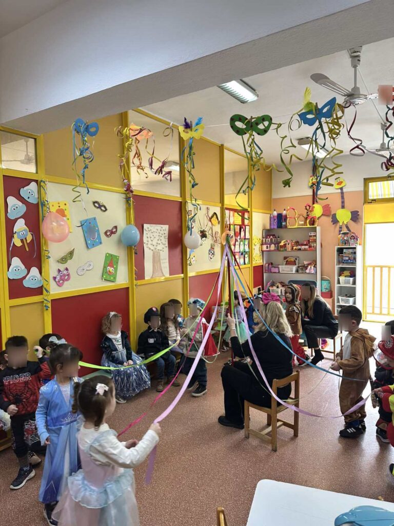Χορέψαμε στο γαϊτανάκι…..Γνωρίσαμε αποκριάτικα έθιμα της Ελλάδας μας….Παρακολουθήσαμε βιωματική παράσταση….Παίξαμε με μπαλόνια και προσπαθήσαμε να τα σκάσουμε….Παίξαμε με σερπαντίνες…Ξεφαντώσαμε με τις δασκάλες μας….Τσικνίσαμε …..